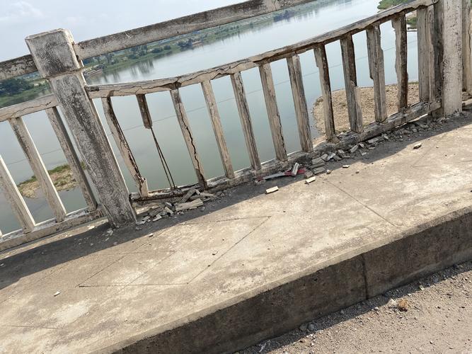 橋梁護欄據(jù)報嚴重受損?;炷翑嗔?,露出生銹的鋼筋,幾乎每個護欄都有裂縫,有些柱子歪斜了。